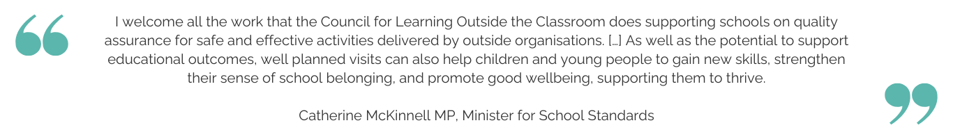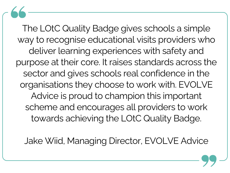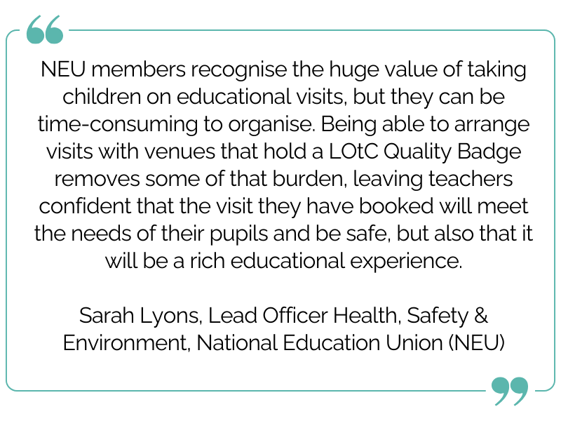 The Department for Education, Senedd Cymru, and teaching unions, including NEU and NASUWT, recommend that schools look for the LOtC Quality Badge when choosing external providers.