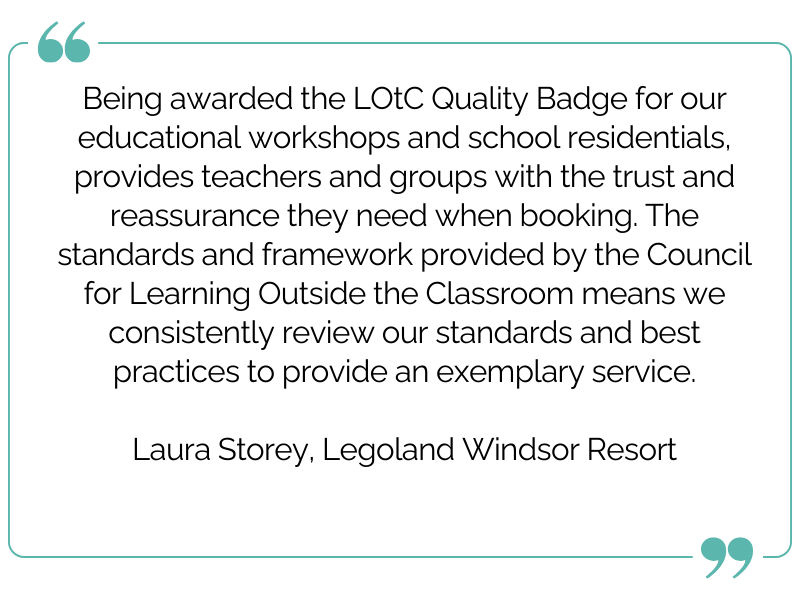 The LOtC Quality Badge is the only national award assessing both the quality of risk management and educational provision across all types of learning outside the classroom providers, including in-school theatre groups and sports coaching, museums and castles, botanical gardens and city farms, theme parks and zoos, field study and adventure centres, and expeditions and study cultural tours abroad.